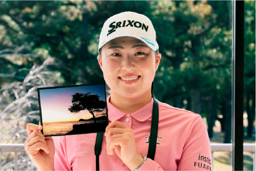 The sound was a pleasant surprise! That “click.” It’s distinctive, something you only get with a real camera. It’s a new sensation, and I absolutely love it. Another great feature is its compactness. When I mentioned that I wanted something I could carry with me while competing on LPGA tours, this was the one recommended to me. It’s professional, yet light and easy to carry.
